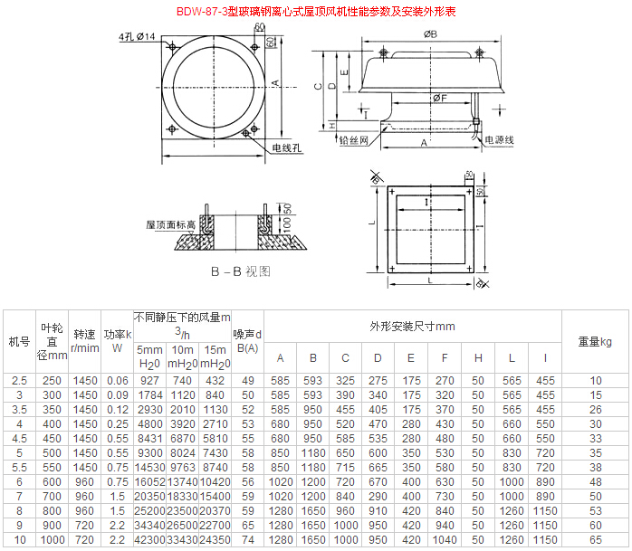 BDW-87-3型玻璃鋼低噪聲屋頂風(fēng)機(jī)是本公司參考國(guó)內(nèi)外同類型風(fēng)機(jī)改用玻璃鋼材質(zhì)研制成的一種低噪聲風(fēng)機(jī)。噪聲可限制在60(A)分貝以內(nèi)。本風(fēng)機(jī)具有噪聲低、效率高、耐腐蝕、重量輕、運(yùn)行可靠、安裝簡(jiǎn)單等特點(diǎn)。